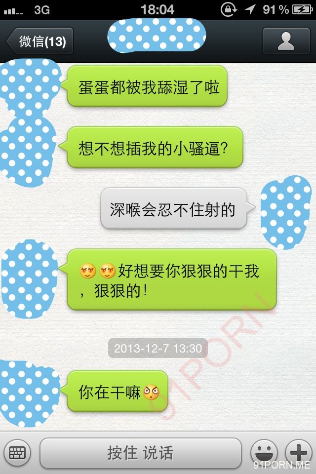 闲话少说,上次足球宝贝的续集内容在硬盘修好后我还在整理,没那么快。本季就先上一段最近无聊跟她微信调情的内容让大家娱乐娱乐罢。