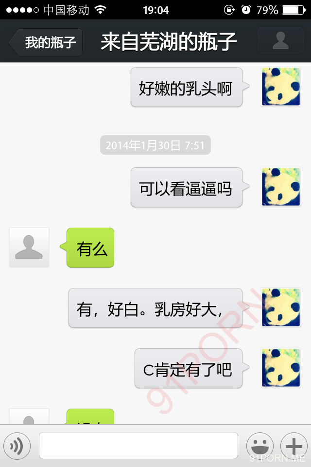 前几天早上很早醒了,无聊,捞了几个瓶子,和一个26岁的良家聊天,小孩已经4、5岁了吧,后面经不住楼主的语言、文字挑逗,被我弄的招架不住了,很期待的让楼主过去艹她,说实在的,有点远,心有余而力不足。下面是对话,可能有点乱,将就着看吧!露脸的我都打马赛克了,隐私还是要保护的。