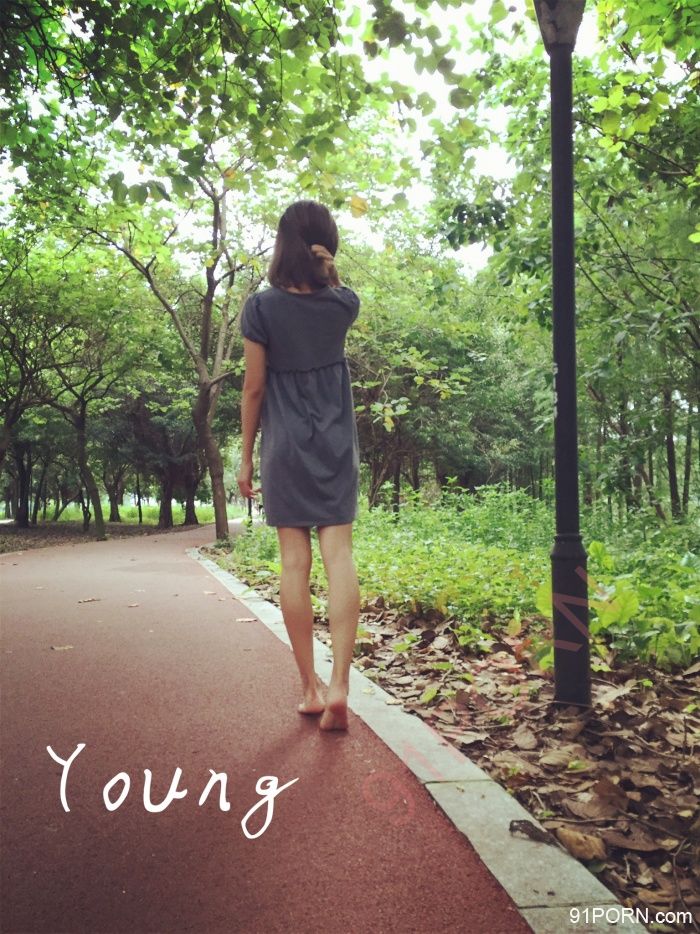 赤足灰裙踏绿道,路旁榕树体妖娆,壁侧撩衣佳人立,芳臀玉腿门中俏。