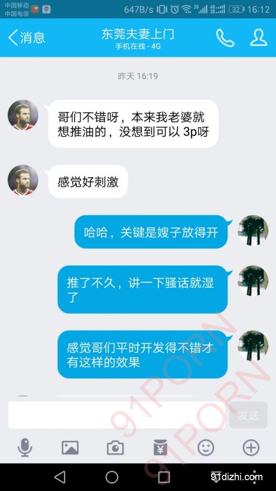 我和A哥夫妻是年前在91认识的(不得不说91真是个好论坛,能够约到很多志同道合的夫妻,情侣,大大地给你们打个广告!),大家都是东莞的,所以很多话题都聊得起来,不幸的是之前删了聊天记录(这部分真是太不幸了,包含了从跟A哥认识到认可,在和A嫂聊骚的全过程),只剩下推油单天的聊天记录。好吧...进入正题!请看片!