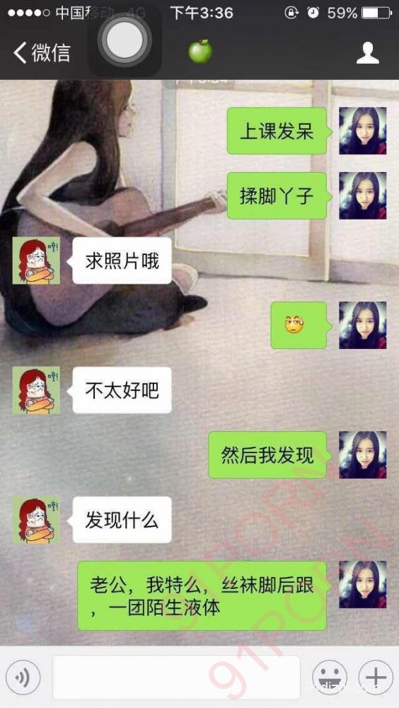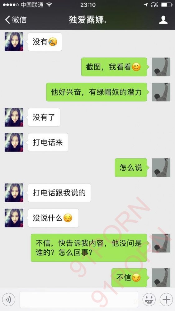 今天有一个红杏女孩加我,说自己喜欢给男朋友戴绿帽子,但没有玩过羞辱男友的游戏,熟悉后给他下了一个任务:告诉自己男朋友发现丝袜上有精液,在教室里不知道谁射的,看是否可以找借口跟男友吵架,结果意外发现,他男友疑似绿帽奴潜力,他知道后很兴奋!