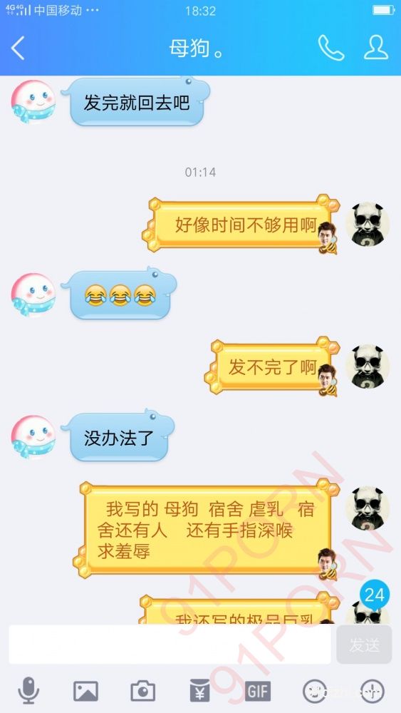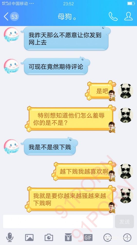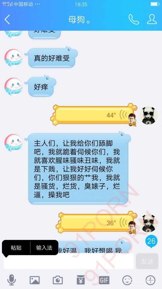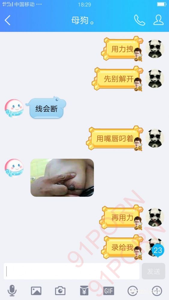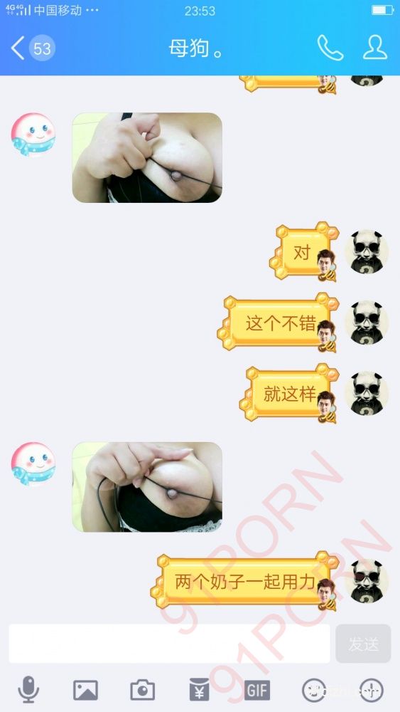你们就好好的看聊天记录吧 不雅于经典小说哦 此母狗例假期间 在朋友家里也没什么道具 所以只能虐乳 后续回家给大家放更精彩的 你们想要怎么玩弄母狗 尽情的羞辱她吧 可以重口羞辱 想怎么骂她都可以 用最粗鲁的语言羞辱她吧