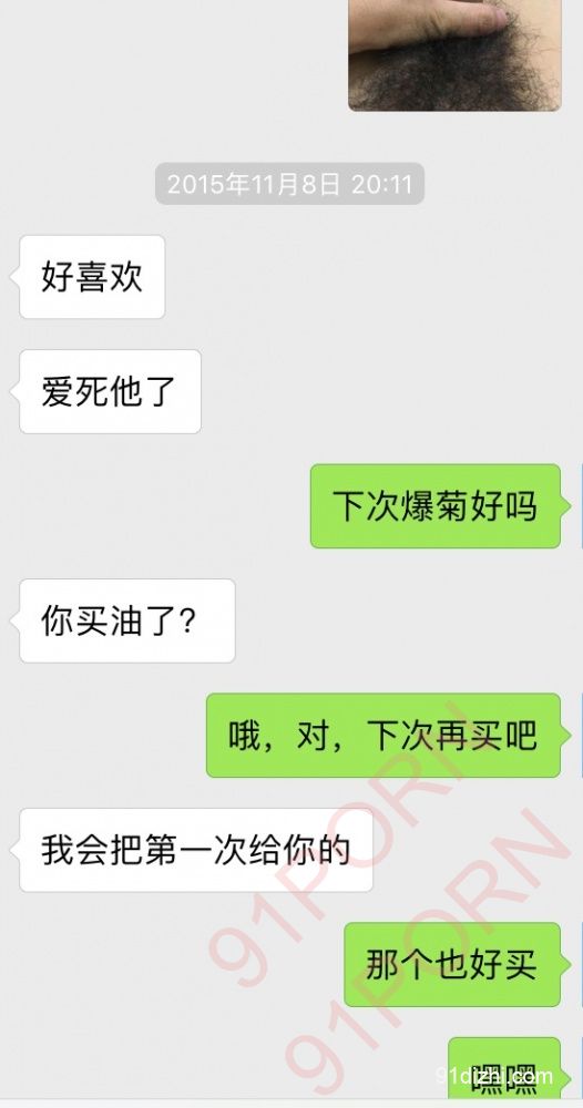 我记得又一次微信聊天,那是在爆菊后了,我问他,喜欢我射在哪里,她说只要你喜欢,射在哪里都可以。我说下次我想射在你脸上,她说,只要你喜欢。