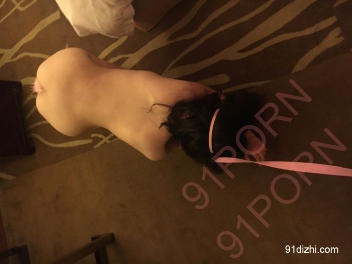 这里发布的是第二天的调教过程, 我上酒店之前命令她刮掉阴毛,脱光衣服,带上狗链,插上尾巴,打开房门,小穴朝外,趴在地上迎接我的到来。