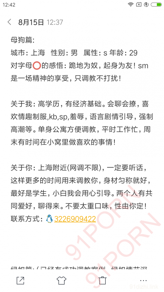 上海的绿奴母狗加我!