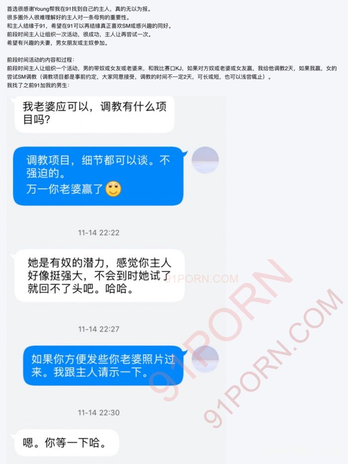 大家好,我是Young,上次帮我的一个母狗朋友找到了主人,她感觉还不错,谢谢大家的支持哈,现在它的主人要求它再组织一个活动。于是它又求助于我了,详情请看图,母狗编辑: