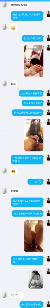 前面是老公加我让我加她老婆,引导老婆自慰的,很快就加上了!母狗也很放得开!自己拿着假鸡巴去另一个房间和我聊天自慰,叫声太美妙了!有情趣的自己看吧!