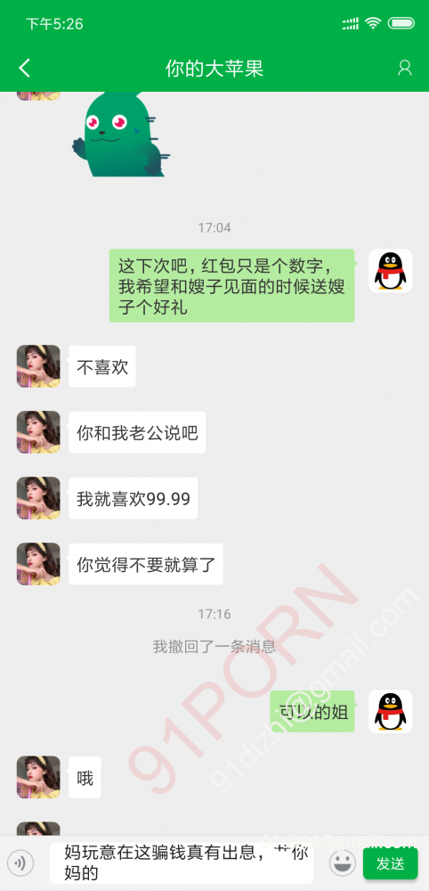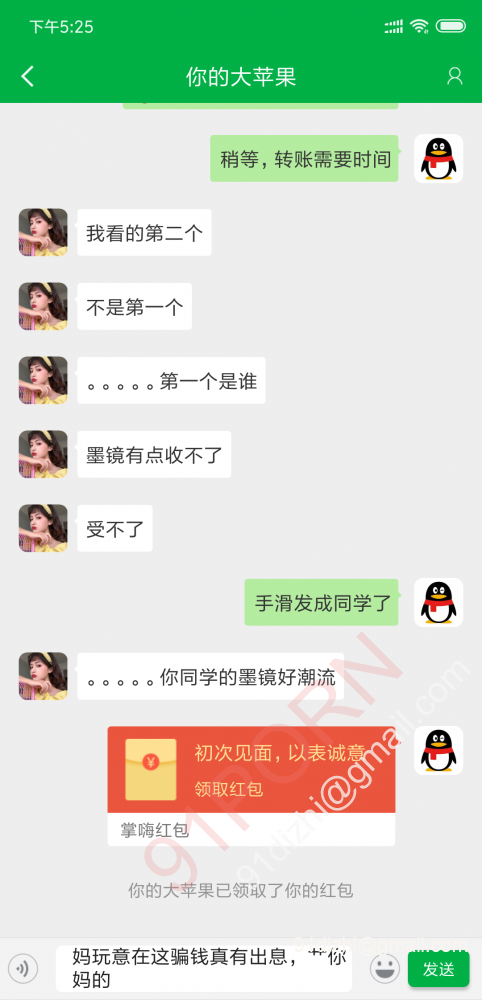 这时候我已经回过神来,八成是个骗子,找她要91验证的照片,她说我查户口,还先发制人的发飙,各种不耐烦,于是果断拉黑删除