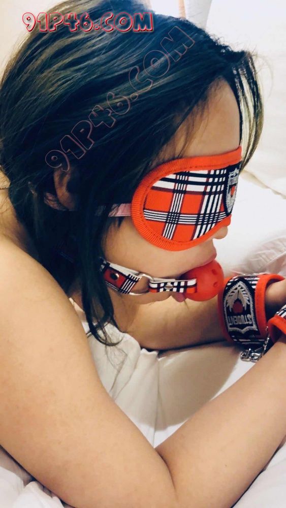 跪在床上是为了更好的把调教棒插入洞穴。这个姿势很美。戴上眼罩缓解了害羞感。