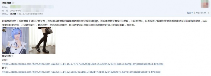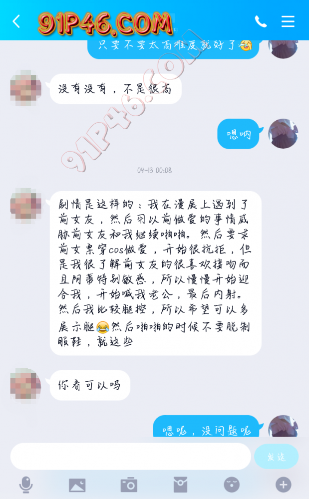 他投稿的剧情是:p君是小姬的前男友,在漫展重逢小姬,然后以之前啪啪啪的经历要挟小姬,穿上女仆装继续啪啪啪