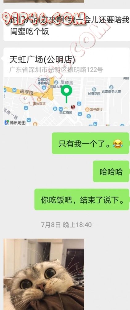 小乔还在和闺蜜吃饭,在光明天虹附近。
