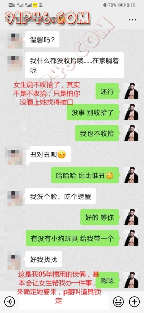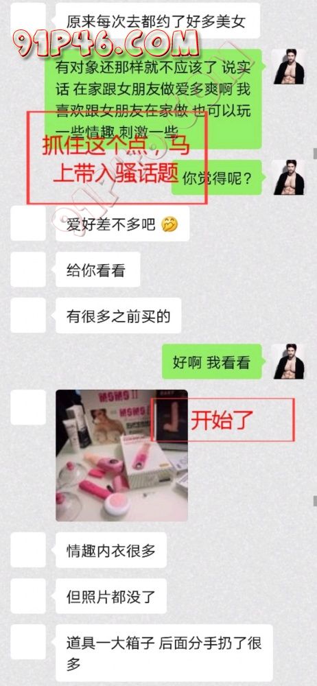 最后,必须要跟兄弟们分享两个很重要的观念,第一个就是约啪和聊骚顺序,你要知道你加这个女生的目的是为了约啪而聊骚,而不是为了聊骚而约啪,很多兄弟都弄反了,看了别人的聊天记录,哇塞,认为这个大神好会聊骚啊,太厉害了,太羡慕了,这有啥用?