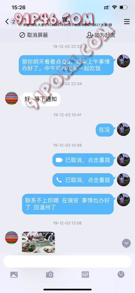 第二天直接联系不上人,视频也不行,语音也不行,发信息也不回。