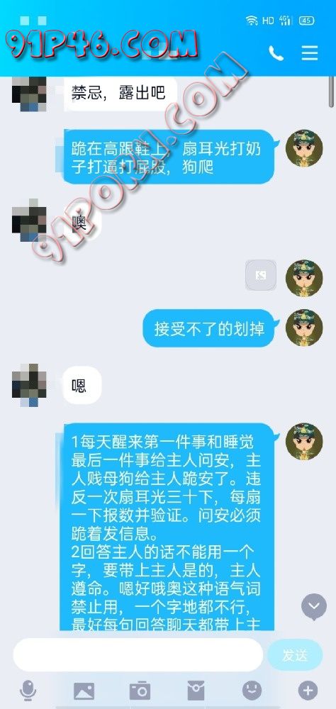 4.必须语音验证是女的,不能验证不要加了,因为我也很忙,需要调教的也多没有时间浪费在骗子身上。有的绿帽需要聊天记录,我想说的是,开发出来的秘密或者尺寸大了你又接受不了,需要聊天记录的勿扰了。之前开发一对,因为开发出一些秘密导致两口子闹矛盾,我也果断删除,前几天也是分手,女m不让前男友知道,最后知道了,两边不是人。也果断分手,所以需要聊天记录勿扰。