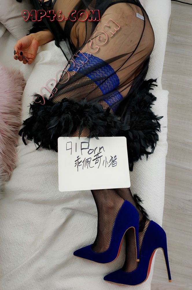 穿上蓝色高跟鞋和蓝边丝袜也是别有风味