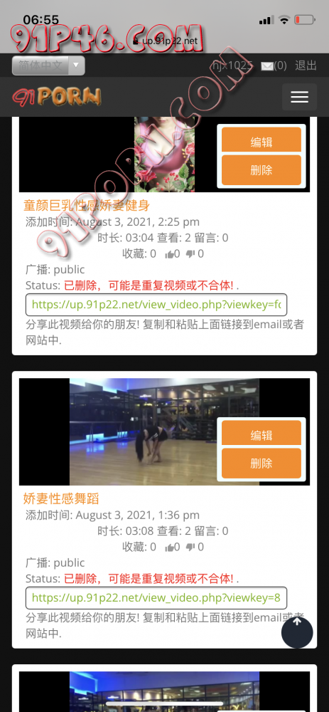 91视频判定内容不合格删除了(详见本贴8楼),还能传哪?