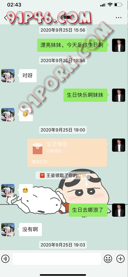 于是中间我整整一个月都没跟她怎么聊,偶尔就是朋友圈相互互动一下。当我在9月25号的时候看到她发了一条朋友圈,得知今天是她生日的时候,我觉得机会来了。因为我一直有关注她的朋友圈,觉得她好像最近过得不是特别好,而且生日的时候好像还在工作,于是我在这个时候找她聊天了。聊天的第一句,还是漂亮妹妹,先夸一夸她。