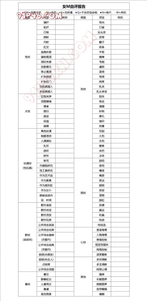 大家有时候总会想着淫妻啊调教啊什么的,不能只是自己在那意淫,忽略了爱人的想法。奉上两份性格自评表,可以给爱人打打分,彼此加深一下了解。