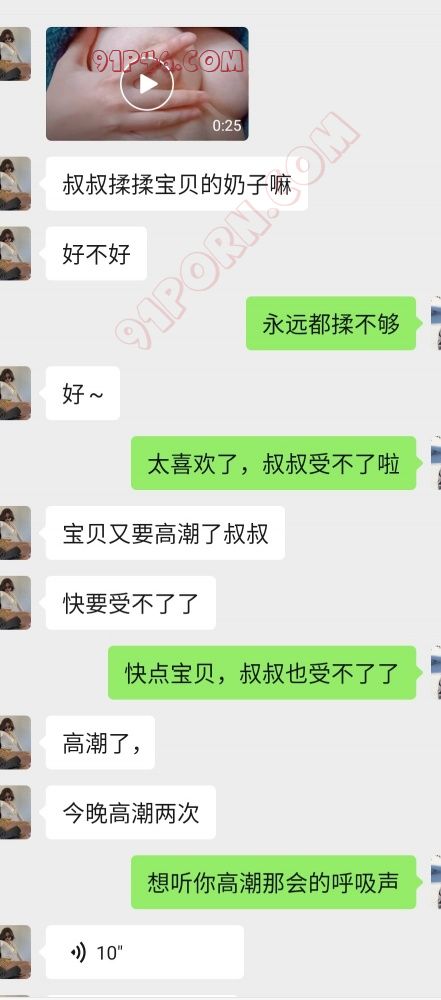 微信聊的高中生小处女,身材没的说,胸大,水多。粉嫩,听话,性欲极强。每天都要聊骚,高潮才能入睡。不过不打算伤害人家的第一次。没打算见面。