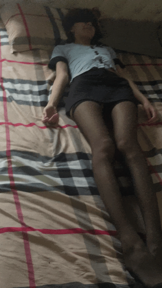 最后自己戴上眼罩 躺在床上等待着未知的人带来未知的调教
