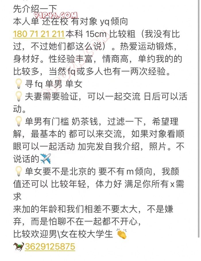 热爱运动锻炼,身材好。性经验丰富,情商高,单约我的的比较多,当然fq或多人也有一两次经验。