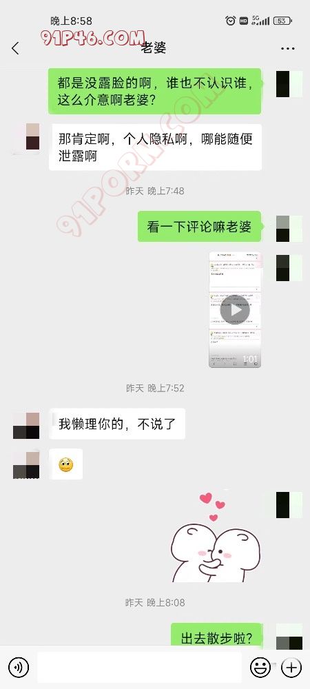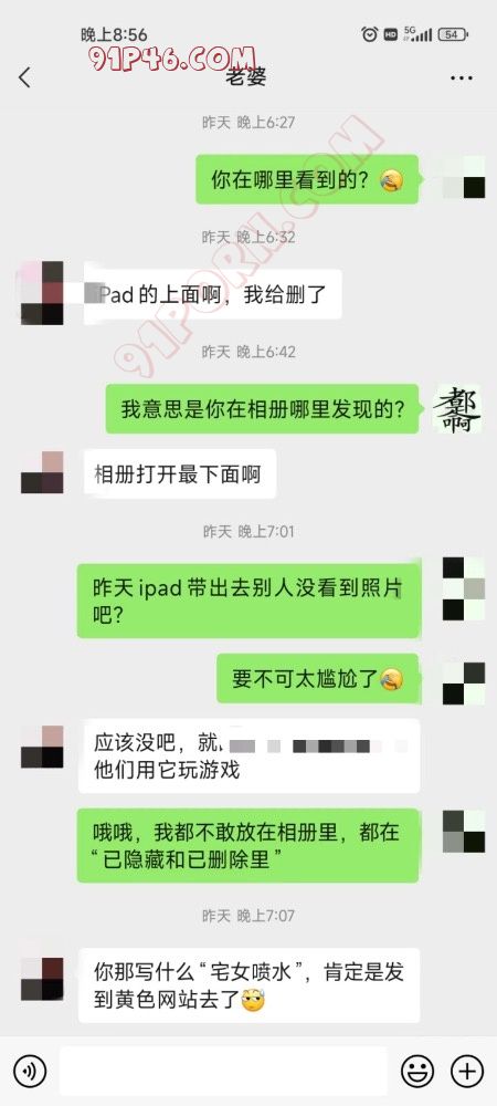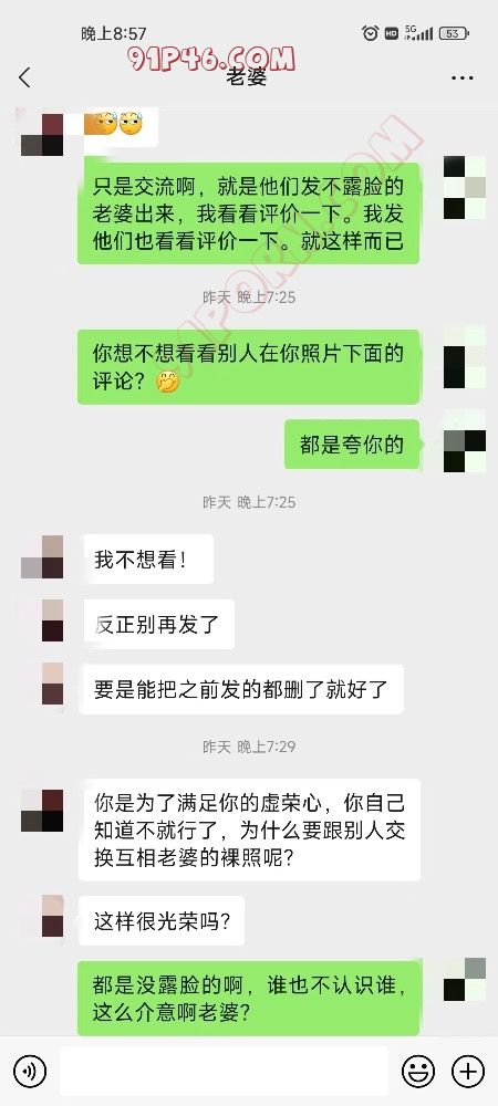 到底还是被老婆发现了,去年就和她说过分享照片给网友的事儿,他不同意。