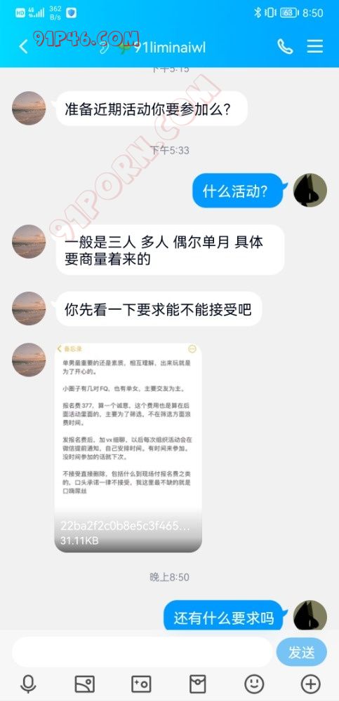 注意这个骗子,之前就遇到过一次,标题0951什么长腿人妻什么的,加了以后不聊要求不聊喜好,直接让你加他交费参加活动。过了段时间现在又换了个id继续这一套。出来玩的夫妻见得多了,人家都是聊聊性趣,谈的来才考虑玩不玩。这种骗子倒好,只要交钱就能玩?呵呵,人家夫妻都是来这找乐趣的,你这是来找生意的? .