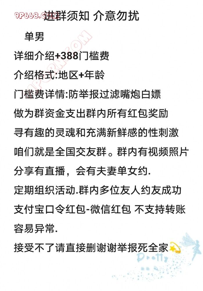 满足自己爱好也可以交更多朋友。像朋友一样去相处.去分享聊天.相遇不易好好珍惜.我自己的小圈子至今已经一年了,结交了200+以上真实验证夫妻朋友! 这个圈子很大-能遇见就是有缘.我们交友真诚以待,会经过严格的筛选,如果你也想要加入我们的秘密花园,请看好以下要求