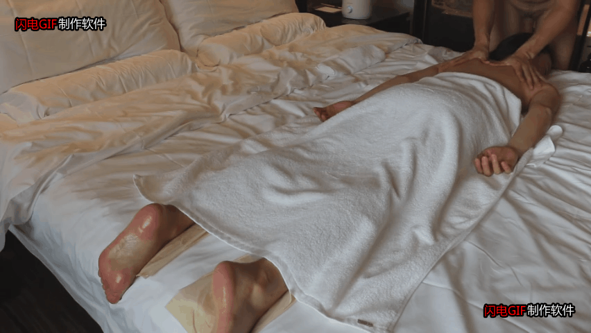 师傅常规从腿开始,貌似很正经,然后开始给屁屁补油,使劲揉了几把