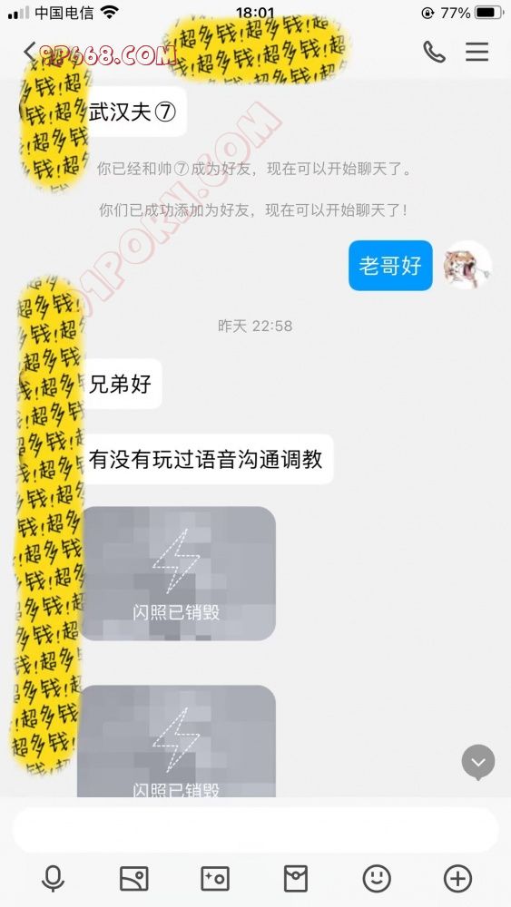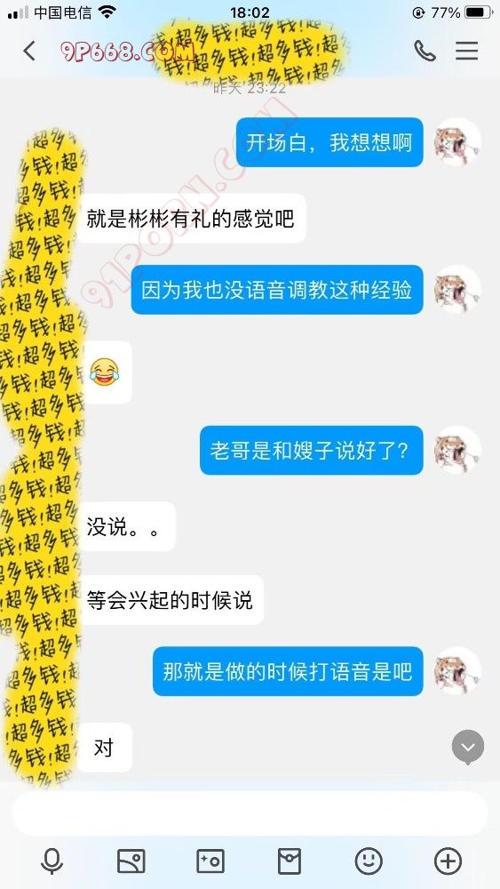 好了。回归话题。5.19日晚深夜11点有余,我就简称他为T哥吧。T哥加了我的企业,问我有没有玩过语音调教,并发来了和嫂子的两张靓照。有一说一,男帅女靓,嫂子一看就是温文儒雅,文质彬彬的类型。