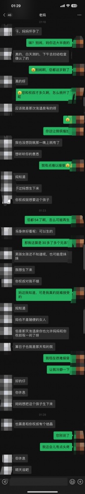 大半夜的老妈发来信息说怀孕了…… 发帖