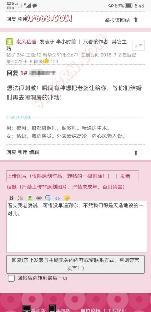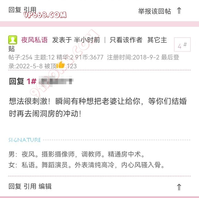 只可惜后来帖主把帖子删掉了。可能是一时精虫上脑发的帖子,等冷静了又后悔了。所以我特意把他的名字、帖子等等信息都隐藏掉了。