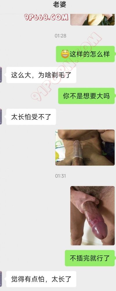 夜里和她微聊,推特上找了几张巨吊图片,说物色了几个让她选择,女人果然是怕长不怕粗,这样的巨吊居然说怕 ...