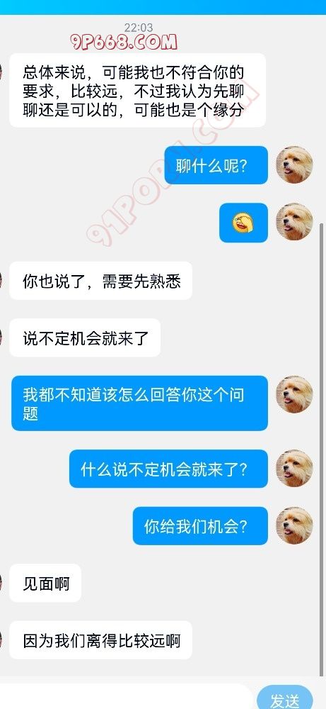 其实当时好想把他直接删除拉黑,想想还是算了,没必要那么较真,所以就没回他消息,22:03分,他又发来一条消息,又张口就来个“你”,然后说“不过我认为先聊聊还是可以的”!我当时真想会他一句“我不要你认为,我要我认为”,哈哈哈,不过我还是忍了,回了他一句“聊什么呢?”,这句话隐含的意思不就是“我没什么和你可聊的”吗?这意思不比秃子头上的虱子更明显吗?好家伙,他接下来整了一句:“说不定机会就来了”,我了个去,这句话差点把给我干自闭了,当时甚至一度想退圈了,至少想把我所有贴子的QQ给删了,真的!这TM哪跟哪啊?,机会就来了,而且还是说不定,这TM我们是不是还得好好把握啊?因为这个机会是“说不定”的!写到这儿实在不想再说什么了,实在说不下去了,感觉为91论坛上的小白单男真是操碎了心,忧国忧民的情怀都干激发出来了!