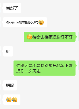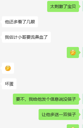 在经历过3P,单约之后,我觉得应该进一步尝试更刺激的玩法,所以趁我值班的时候,跟老婆沟通了一下,我给她点个外卖,让她全裸取外卖,但是老婆不同意,最后说穿着情趣内衣取,因为我们这边天气已经很冷了,所以外面又套了一个衬衣,提前让老婆把手机固定好打开录制视频,我特意交代她,如果是个帅哥,就把门开大一点,动作大一点,把衬衣掀开给小哥看。没想到真是个小帅哥,可惜取之前老婆没做好心理建设,小哥走后老婆后悔了,后悔没鼓足勇气把小帅哥留下,然后我就用某团给小帅哥发信息,想加上小哥的微信,结果小哥估计是怕被套路,所以直到现在都没要到小哥的微信。