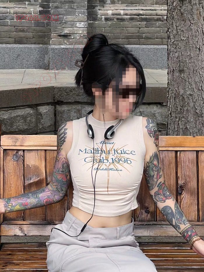 这时候又进来了一位小姑娘,同样的长发大花臂,同样的露脐装,只是她的红色T恤更短,几乎要看到内衣的感觉,下面是一件超短的白色包臀短裤。