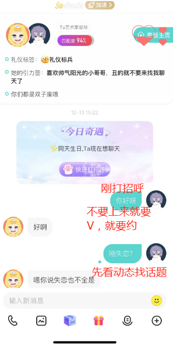 很多兄弟们都不知道如何玩软件平台,其实玩软件是有很多技巧的,不是你一味的滑动匹配到就可以马上有妹子主动送上门的,是需要你了解如何去用,怎么才能撩到妹子心里。
