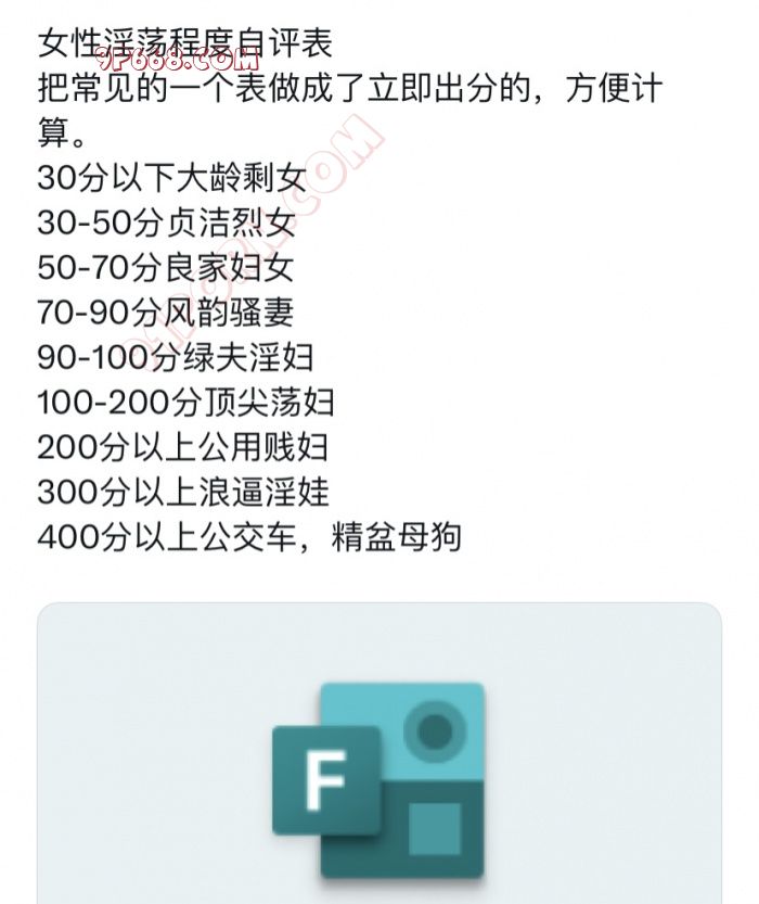 老婆测了正好得90分,不知道她属于风韵骚妻还是绿夫淫妇了。老婆换下来的一条内裤放了好几天了也不洗,难道等着我给她洗呢?
