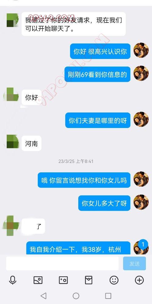 可能很多很多人接受不了这个,这个就和普通人接受不了夫妻交友圈一样,我一开始也接受不了,这个一定是个小众圈子,但是现在交流多了,感觉什么禁忌都能听到进去了,也能理解每个人的状态和心情了,总之自己不喜欢的可以不去参与,但是不会去阻止别人,毕竟每个人的具体情况都是不一样的,下面是经过他同意的聊天截图发给大家看看,请大家不要问我联系方式,也不要去打探他们隐私,就当一种故事在听,然后希望有这样爱好的夫妻情侣,也可以加我的(企鹅:846207079)一起交流。