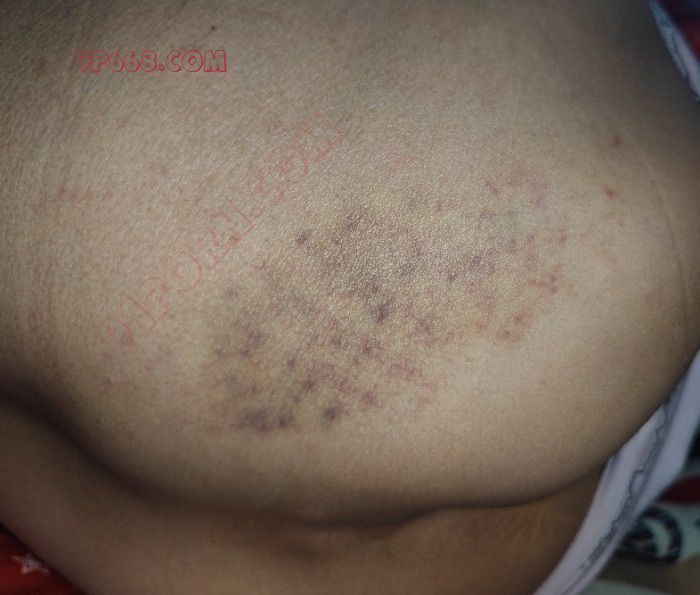 间隔36小时后,老婆的屁股被打的痕迹还没消散,老婆说碰一下还疼。