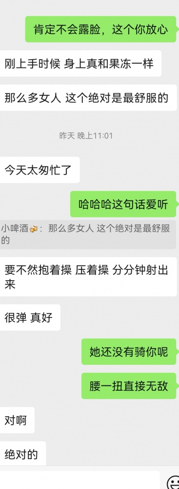 当然也遇到了很多高质量有素质的单男,也发现了真正想活动的兄弟也不会在乎那几十块门槛,只要验证真实他们愿意出更多,所以下次活动还是会考虑收门槛过滤一下,接受不了的就不要加了,之前的帖子我们诚意满满,收获了太多恶意,就不一一截图发出来了