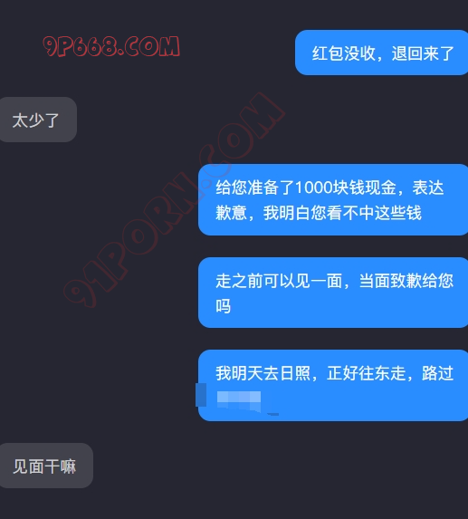 昨天做了一件错事,惹她生气了,说好让她拍一个穿过的内裤,然后放在洗手间,再拍一张,故意让她看看女婿动不动,结果她拍完第一张,把内裤洗了,我于是发了50,说再拍张晾上的照片,再发50,当时考虑不妥当,惹她生气了。人家确实也不缺这点钱,今天哄了一天没理我,今天正好来她城市出差,给她准备了1000现金,说当面道歉,她答应见我了。以前红包都是女婿给报销,明天这1000不用了,他刚工作不久,私房钱也不多。