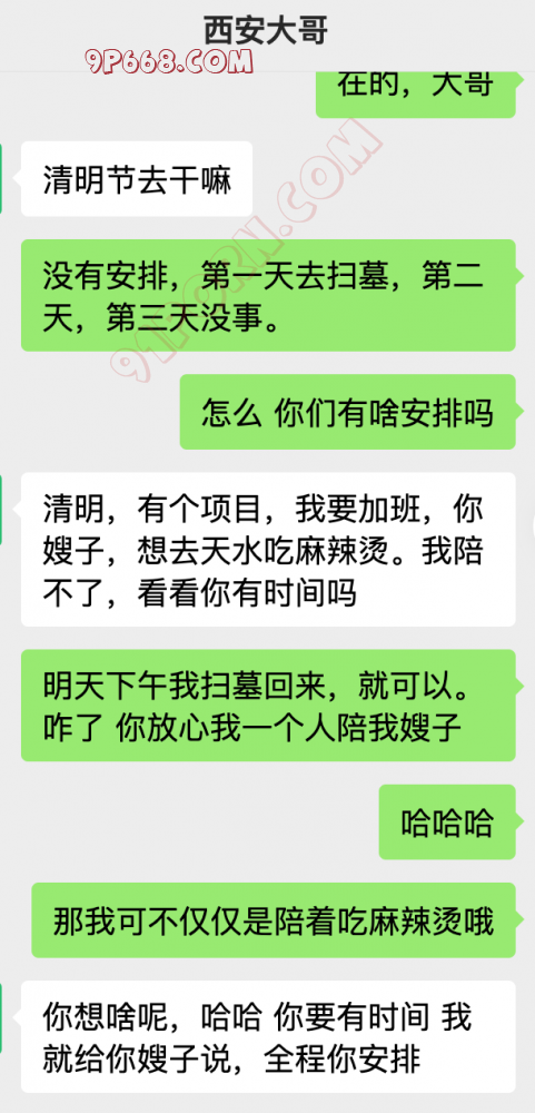 好久没有在91上发帖了,而且感觉甘肃夫妻靠谱的都不在了。好多都是骗钱的活着是想要白嫖的。刚好清明节有活动,想着发发帖子。之前发的帖子都删了,有段时间感觉不太安全。有靠谱的体制内、央企国企中年夫妻可以加我,二期要二期无二刘扒丝交流交流。(看认证图)单男和无业游民就算了,毕竟安全第一。最早接触91的时候,那时候还风华正茂,现在也逐渐步入中年了。本人181 31 160 体制内工作。之前接触的一波人也渐渐消失了,退圈了。 清明放假正愁无哪里玩,前在西安认识的夫妻大哥,活动过几次人不错,对我也信任,有半年没见了,平时就是嘘寒问暖,突然问题清明有时间吗?他清明加班,嫂子想吃天水麻辣烫。让我安排一下。想想嫂子诱惑的样子,我瞬间就答应了,哈哈哈。