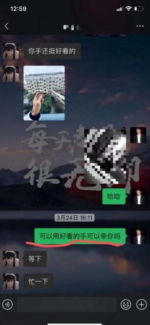 很多兄弟也会遇到妹子找你要照片的情况,他们总是问我这个时候要怎么办?其实妹子只要找你要照片了,你最后肯定是要给一张的,假如你不给,会给妹子留下你不自信的印象,连张照片都拿不出手?但是给的方式可以有很多。兄弟们的顾虑呢其实我一样也是有的,无聊哥长得也不帅,遇到妹子问我身高的时候我也挺尴尬的,我才165,勉强说170,但是吧根据我的经验,在加了微信以后极少遇到妹子要了照片觉得我不帅把我删了的情况,我基本都能约出来。好多时候,自信都是慢慢建立在一次次的成功之上的,等你约到越来越多的妹子,你也会变得自信。在交友软件上加到微信之前,我倒是也遇到过几个给了我自拍照之后妹子不理我的情况,但是这丝毫影响不了我,因为我的“玩家心态”告诉我,这改变不了什么,唯一能改变的就是我的约会对象从这个女人变成另外一个女人了而已。