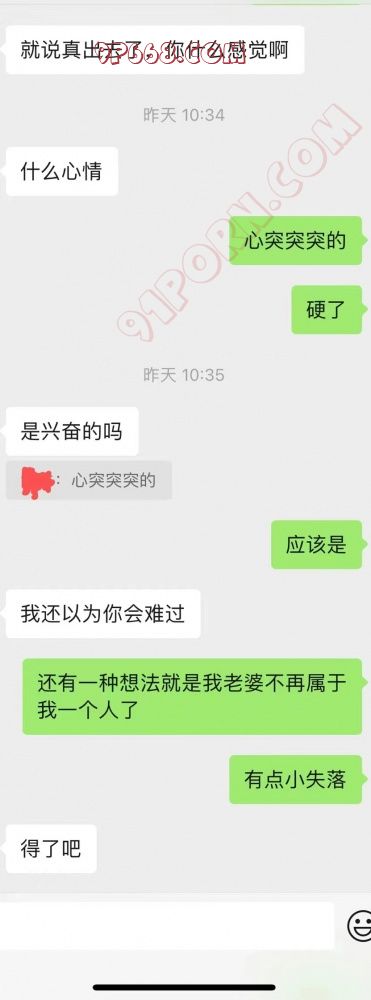 刺激,都这步了,其实就需要你给她鼓励,你自己不用纠结了,走到这步刹车不了的。你现在强行刹车,后面几天几个月会越来越烦躁,时不时后悔和不后悔里纠结。老婆被操了,就会当下后悔几天,后面全是性福生活了。这么好开发的老婆,我都羡慕