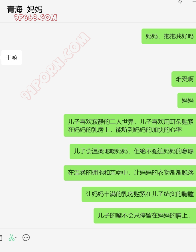 儿子昨天晚上睡着了,今天早晨聊了一会,他也震惊和她妈妈一天就撩骚上了!这个恋母话题确实太拿捏了,聊老女人秘诀!有时候对年轻女人也好使,主要是引入性话题。还需要再验证一下母子关系!早晨让儿子和妈妈聊会天,截图聊天记录。不过说实在的,这种聊天记录也不太好验证,除非妈妈哪天跟我语音或者视频了!