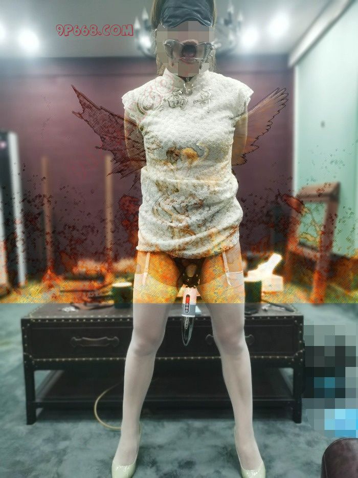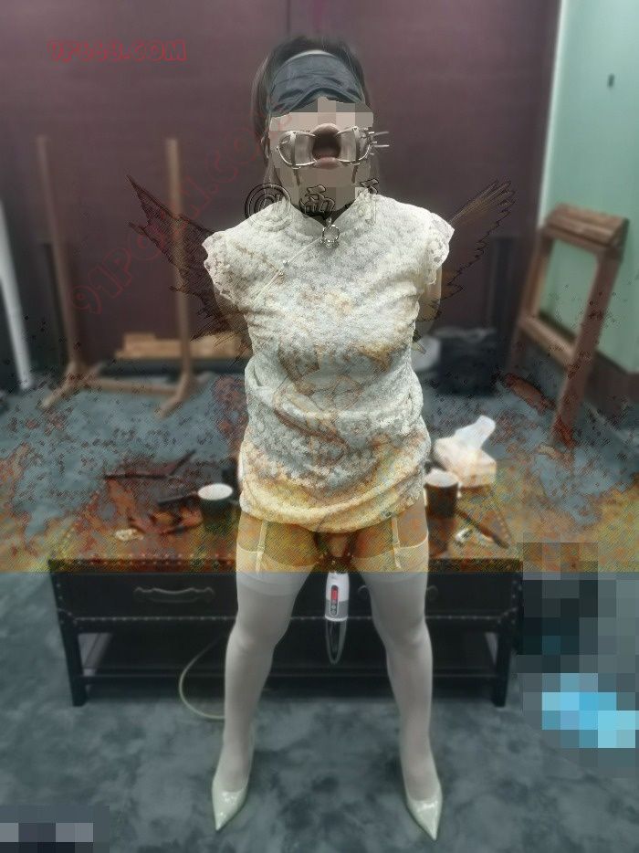 正面,努力背负的双手,眼罩、口枷、AV棒,同样是一帧融合了淫靡与美丽的诱人画面。