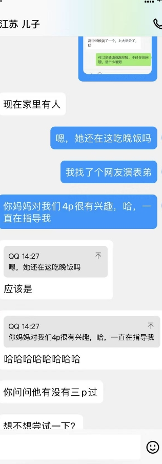 加入和表弟,我姨和我妈妈的4p话题,还有我妈妈和我姨的女女话题,哈。她还在那一本正经的帮我出主意,怎么才能4p。找了个粉丝,演我表弟,和表弟的对话发给她看。