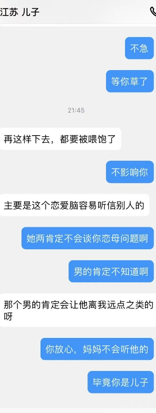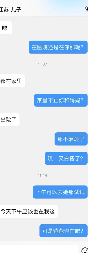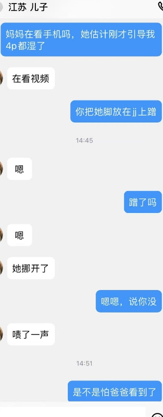 儿子的爸爸出院了,妈妈在他家照顾呢,刚才儿子偷偷抱了抱妈妈,还蹭了奶子。看看晚上有没有机会去妈妈那吧,他那是不方便了。继续PUA妈妈母子话题,让她觉得母子做也很正常。