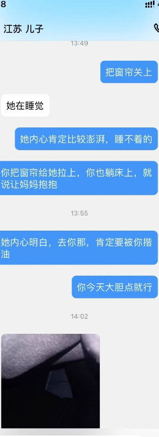 现场直播:妈妈已经到儿子家了,昨天上的夜班,躺着了儿子床上,正在玩手机。爸爸去上班了。今天是个好机会,看看儿子给力不给力了